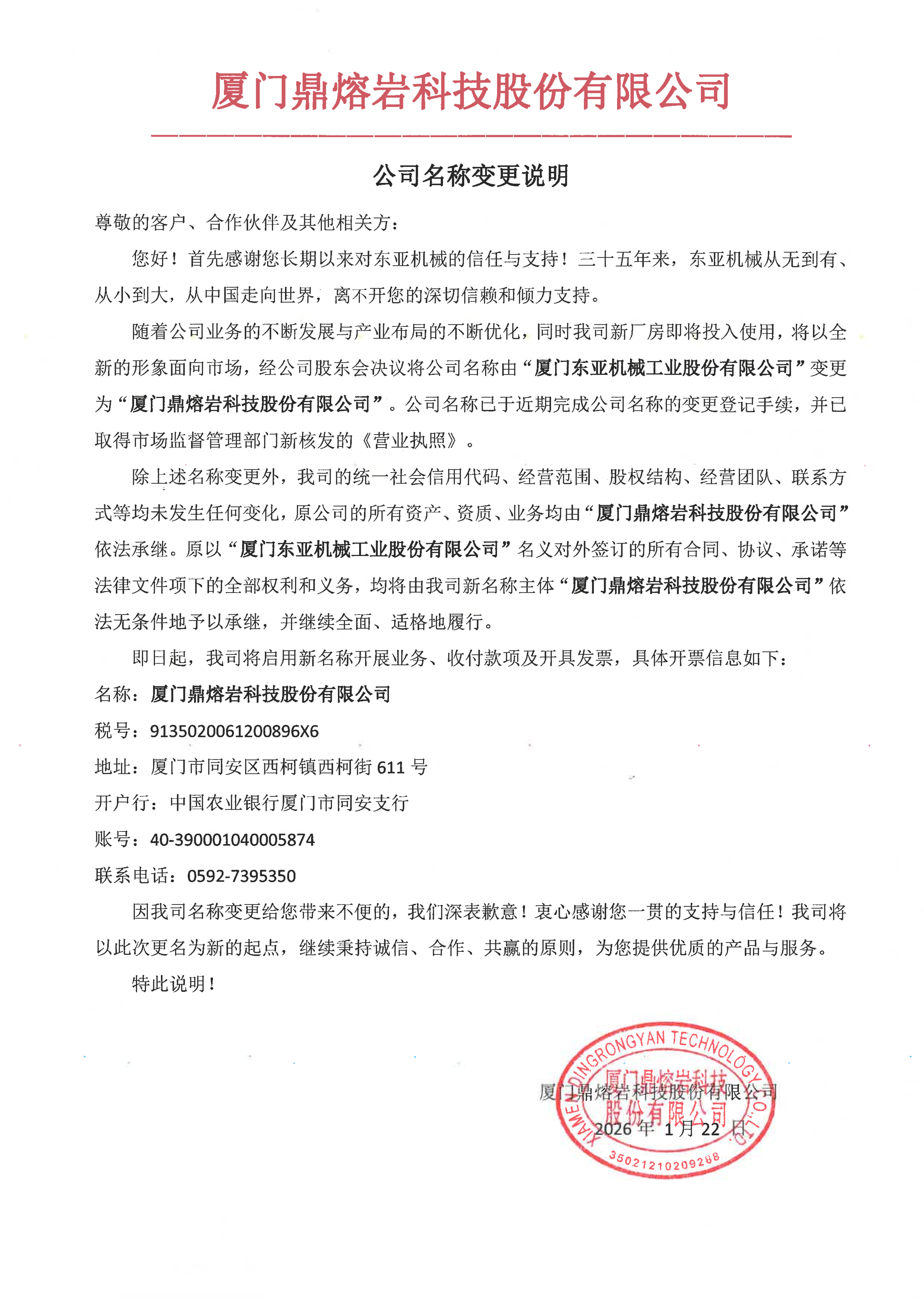 關(guān)于“東亞機(jī)械”更名為“鼎熔巖”的名稱(chēng)變更說(shuō)明